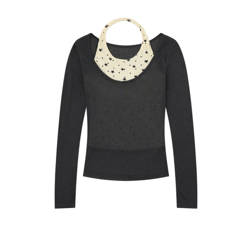 Black Halter Neck Long Sleeve with Star Pattern